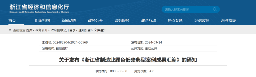 以下为《浙江省制造业绿色低碳典型案例成果汇编的通知》全文: