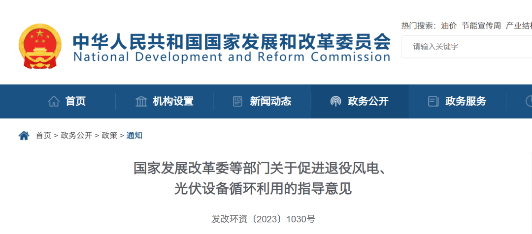 原文:以习近平新时代中国特色社会主义思想为指导,全面贯彻党的二十大精神,深入贯彻习近平生态文明思想,完整、准确、全面贯彻新发展理念,加快构建新发展格局,着力推动高质量发展,加快发展方式绿色转型,深入践行全面节约战略,积极构建覆盖绿色设计、规范回收、高值利用、无害处置等环节的风电和光伏设备循环利用体系,补齐风电、光伏产业链绿色低碳循环发展最后一环,助力实现碳达峰碳中和。