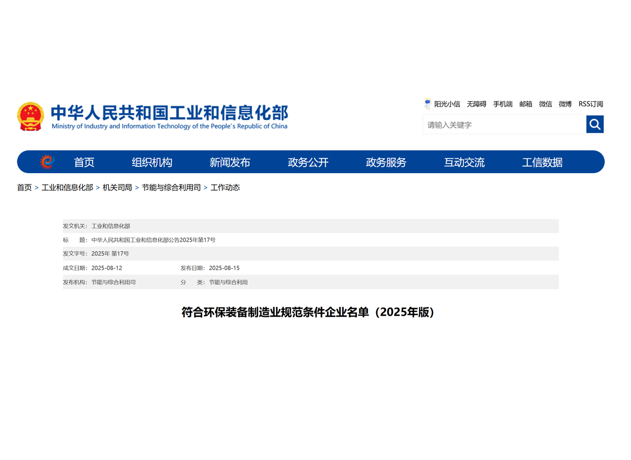 按照《环保装备制造行业(大气治理)规范条件》《环保装备制造行业(污水治理)规范条件》《环保装备制造行业(环境监测仪器)规范条件》《环保装备制造行业(固废处理装备...